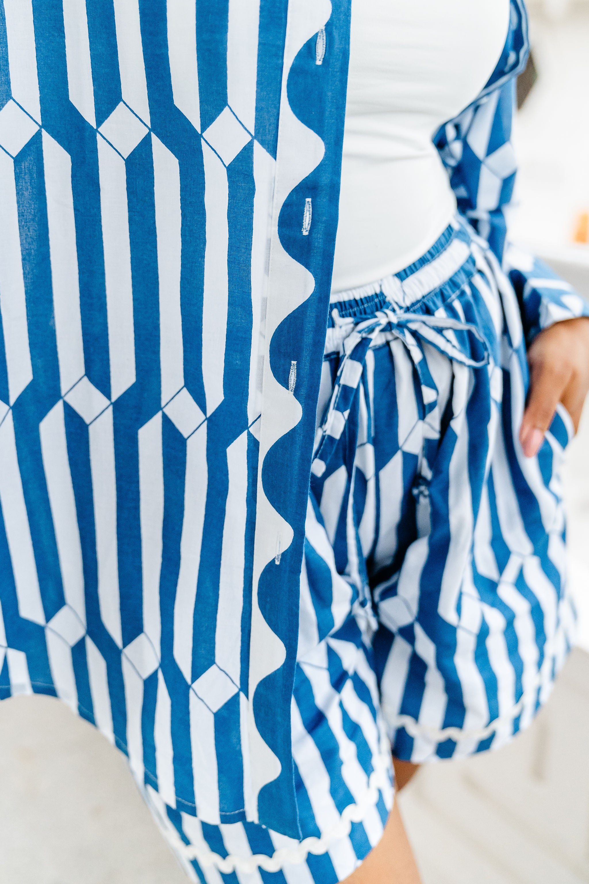 Hi Grace. Thank you so much for your honest feedback — we’re really glad you loved the cut. We use a premium cotton that’s intentionally woven to have a beautiful structure and to ensure it isn’t see-through, especially in white. The slight blue undertone is part of the fabric’s finish, chosen to keep the white crisp and fresh over time. We truly appreciate your thoughts and will keep them in mind as we continue refining every detail.