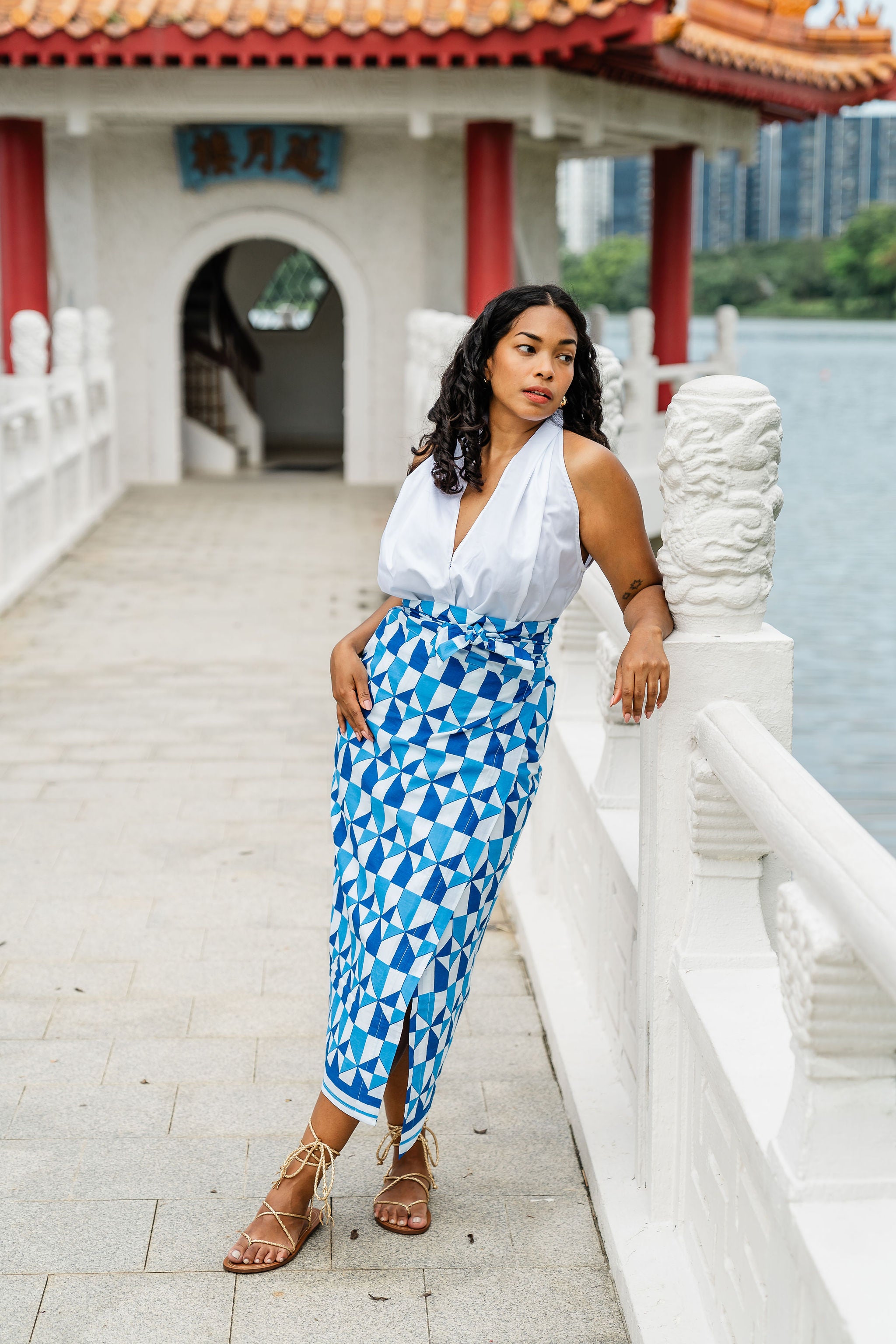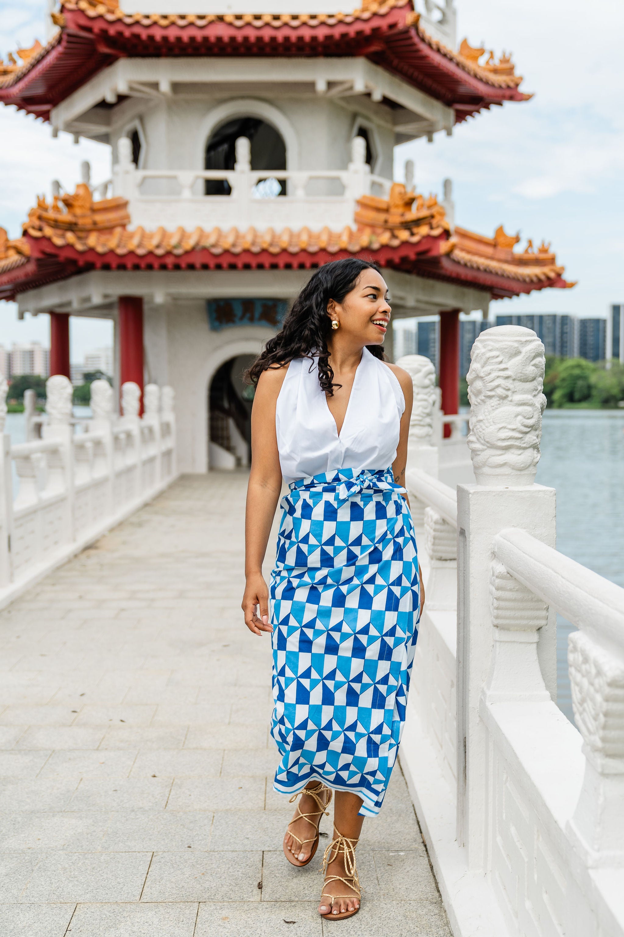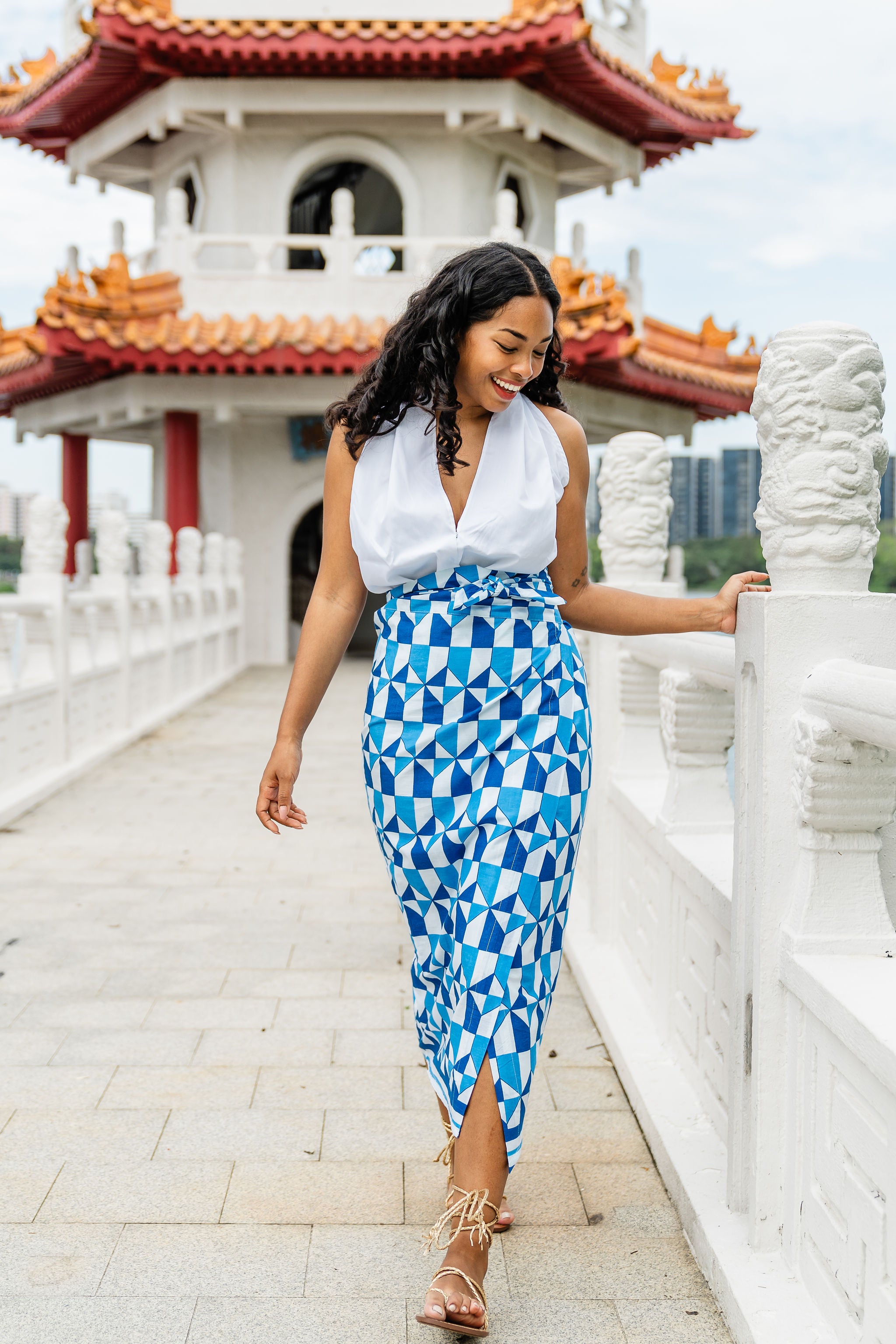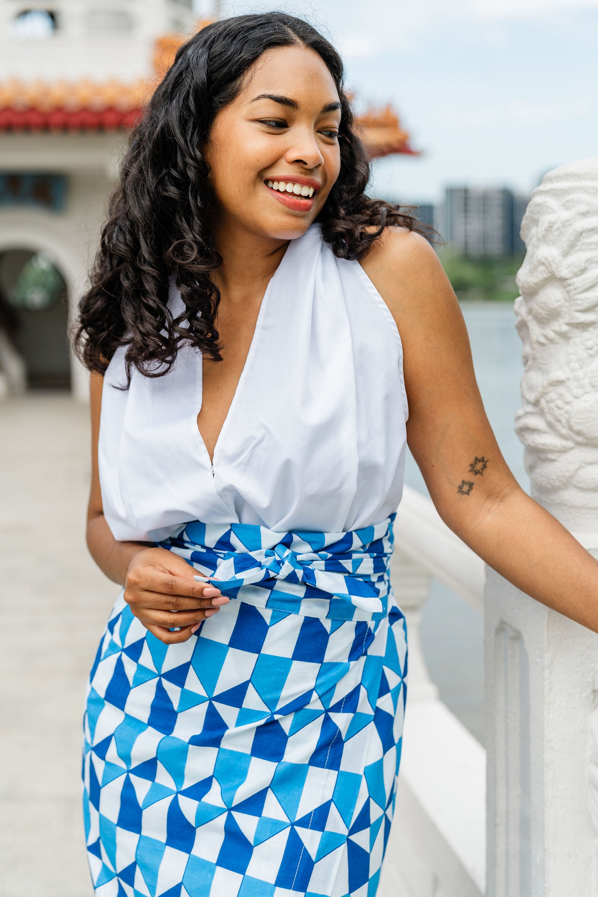 A Maisha wrap skirt! 100% cotton lightweight, fully lined and with the adjustable wrap tie fastening it's so easy to style for your comfortability. Pair with a white magic shirt or our halter top.